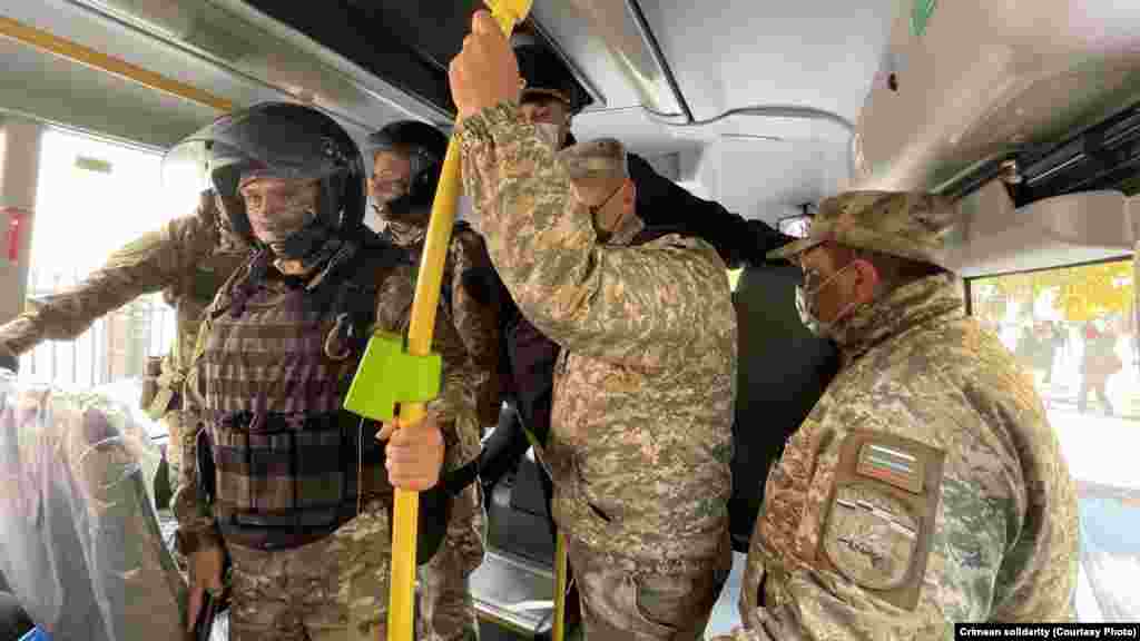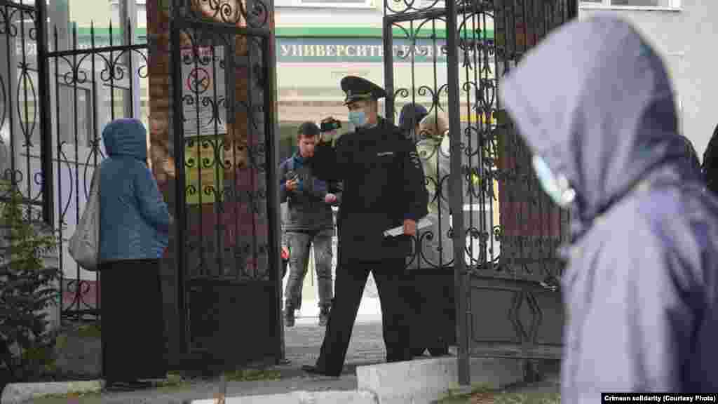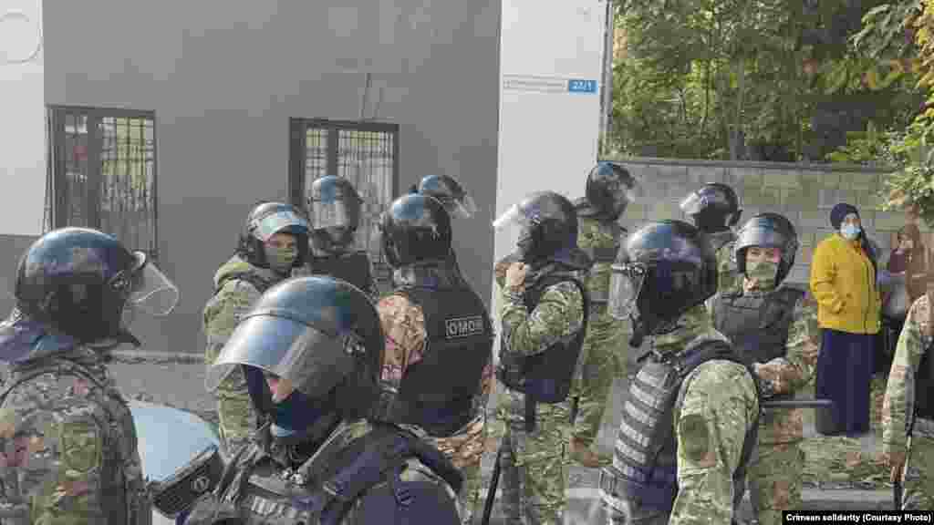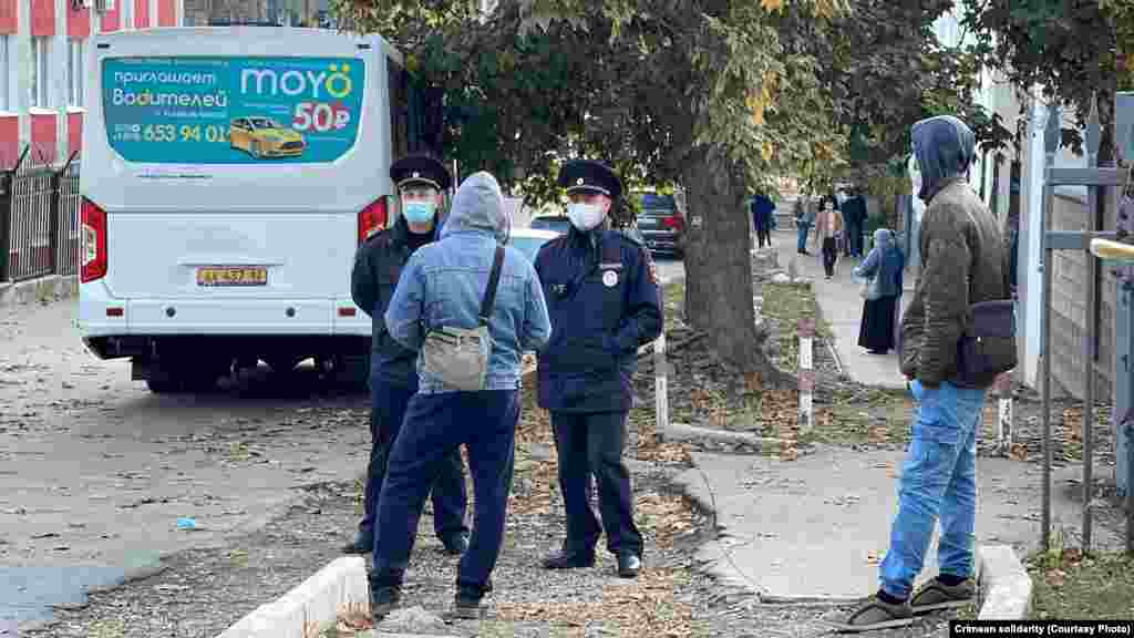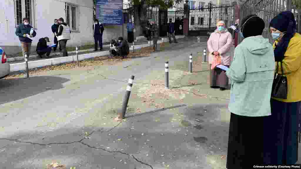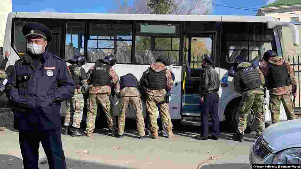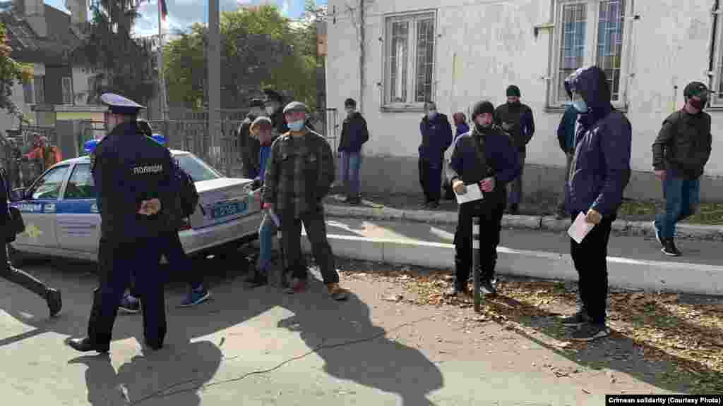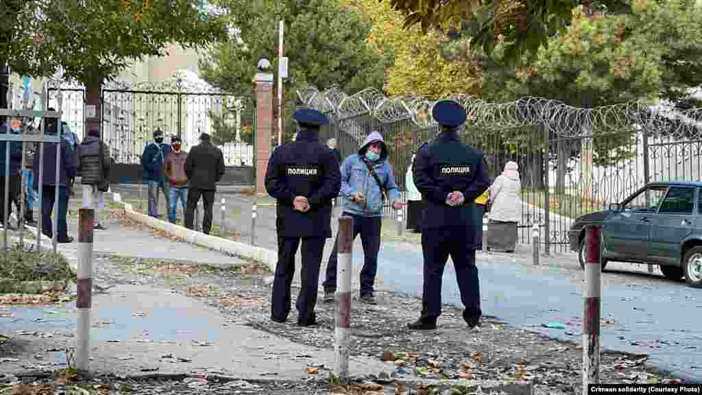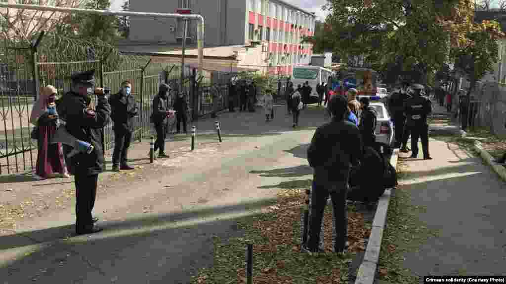 Вранці 25 жовтня біля будівлі Кримського гарнізонного військового суду в Сімферополі зібралися кримські татари, щоб підтримати фігурантів красногвардійської «справи Хізб ут-Тахрір». У суді адвокати через відеоконференцзв'язок повинні були взяти участь у розгляді апеляційної скарги на вирок у цій справі. Російські поліцейські вимагали від присутніх розійтися, після чого співробітники ОМОНу почали заводити присутніх під судом в автобус, у тому числі жінок.