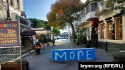 Море – головна визначна пам'ятка Ялти, і місцеві жителі, мабуть, вирішили подбати про туристів. Саморобний покажчик не помітити неможливо.