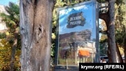 Хочеться відвернутися та не бачити ці військові плакати, які, на жаль, уже у Криму всюди.