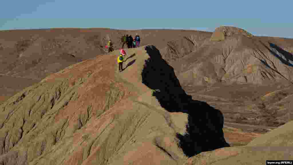 Туристи на гребені Хамелеона, довжина якого складає 70 метрів. Максимальна висота мису – 62 метри